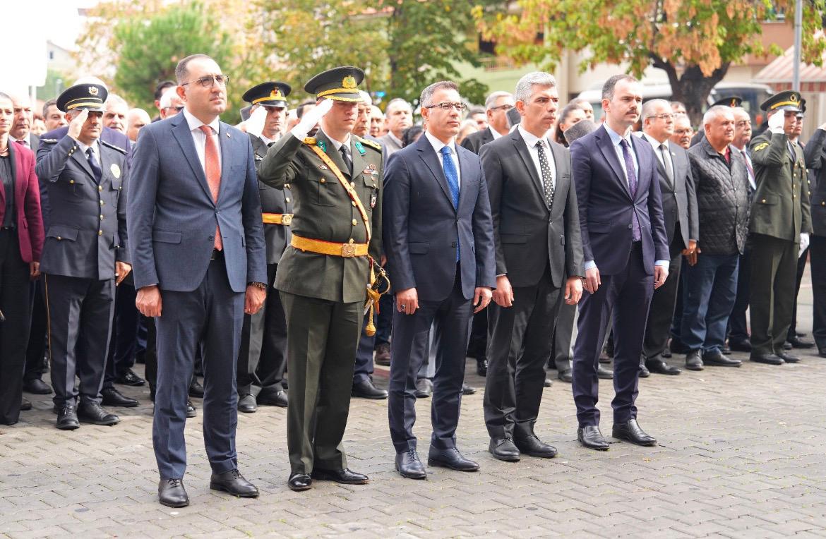 İlçe Kaymakamı Ünal Koç, Soma Belediye Başkanı, ilçe protokolü, daire amirleri, öğrenciler ve vatandaşların katıldığı törende, Atatürk anıtına çelenk sunuldu, ardından saygı duruşu ve İstiklâl Marşı okundu.