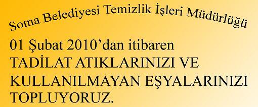 Soma Belediyesi, yeni yılda başlatacağı çalışma ile Tadilat atıklarınızı ve kullanılmayan eşyalarınızı belirli periyotlarla toplayacak. 24