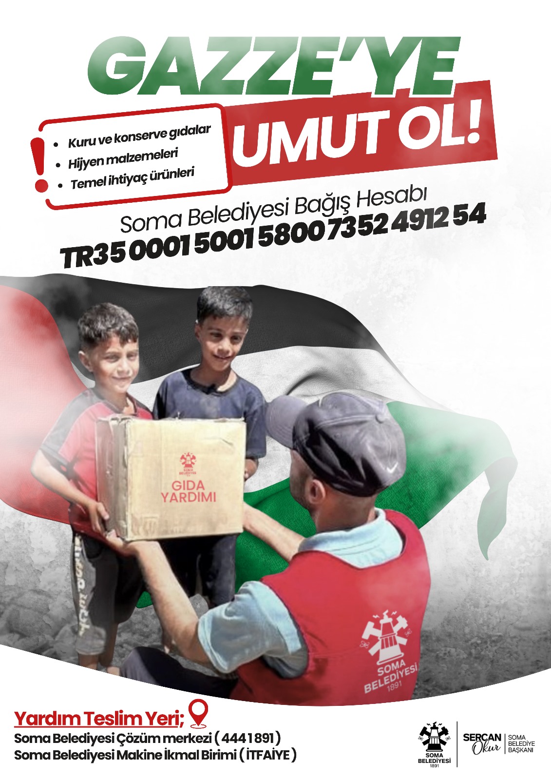 Soma Belediyesi olarak, “Gazze’ye Umut Ol” yardım kampanyamızı başlatıyoruz.