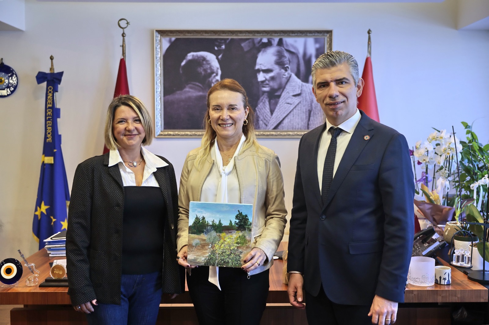 Karşılıklı fikir alışverişiyle verimli geçen buluşmada, Konak Belediye Başkanı Nilüfer Çınarlı Mutlu da dayanışma ve iş birliğinin güçlendirilmesinden duyduğu memnuniyeti dile getirdi.