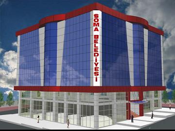 Gelişen Somanın sorunlarına cevap veremeyen eski Belediye Binası yıkılarak Belediyenin bütün birimlerini bir araya getirecek yeni belediye hizmet binamız 850 m2 taban alanı, 5.000 m2 kullanım alanına sahip olup Zemin + 4 kattan oluşmaktadır. Zemin katında 15 adet işyeri yüklenicinin uhdesinde olup, 1. 2.3. ve 4. katlar Belediye hizmet Binası olarak düzenlenmiştir. Belediye Hizmet Binası inşaatı kat karşılığı yöntemi ile ihale edilmiş olup, Belediye kasasından hiç para harcanmamış ve üzerine yükleniciden ihale arttırım bedeli olarak 710.000 YTL (KDV dahil) Belediyemize gelir elde edilmiştir. Teslim Süresi 16 ay olup, 26/12/2008 tarihine kadar teslim edilecektir.