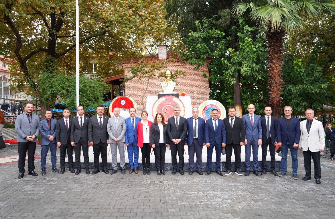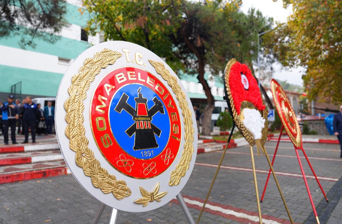 İlçe Kaymakamı Ünal Koç, Soma Belediye Başkanı, ilçe protokolü, daire amirleri, öğrenciler ve vatandaşların katıldığı törende, Atatürk anıtına çelenk sunuldu, ardından saygı duruşu ve İstiklâl Marşı okundu.