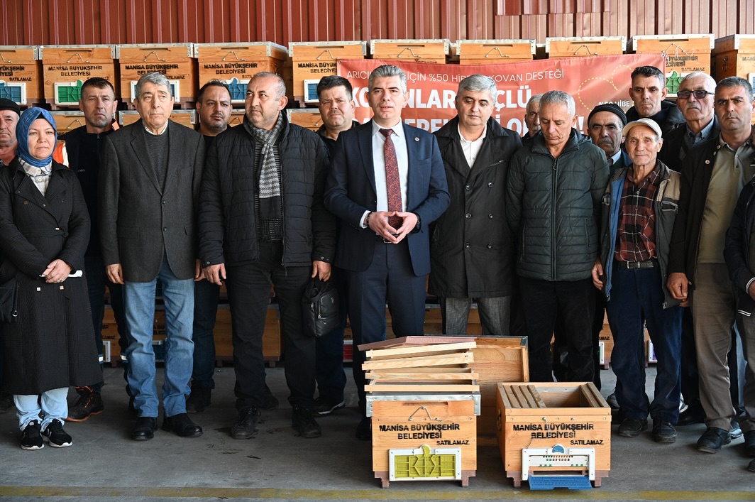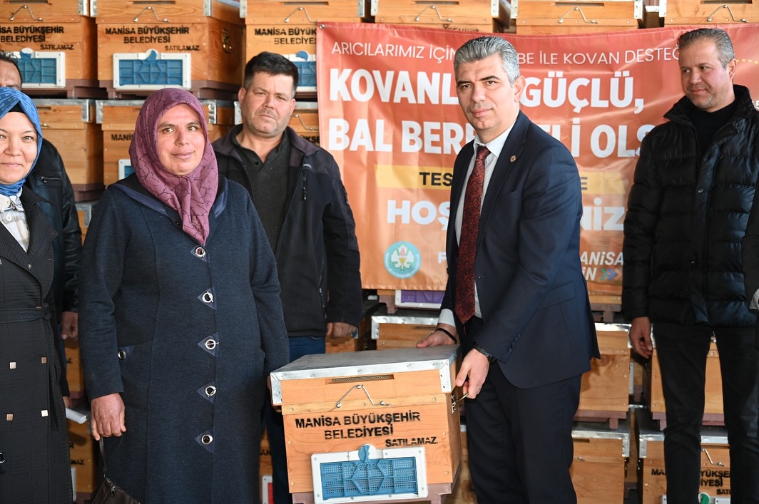 Bugün, arıcılıkla uğraşan çiftçilerimize %50 hibeli 190 kovan dağıttık. Manisa Büyükşehir Belediye Başkanımız Sayın Ferdi Zeyrek’e teşekkür ederim.
