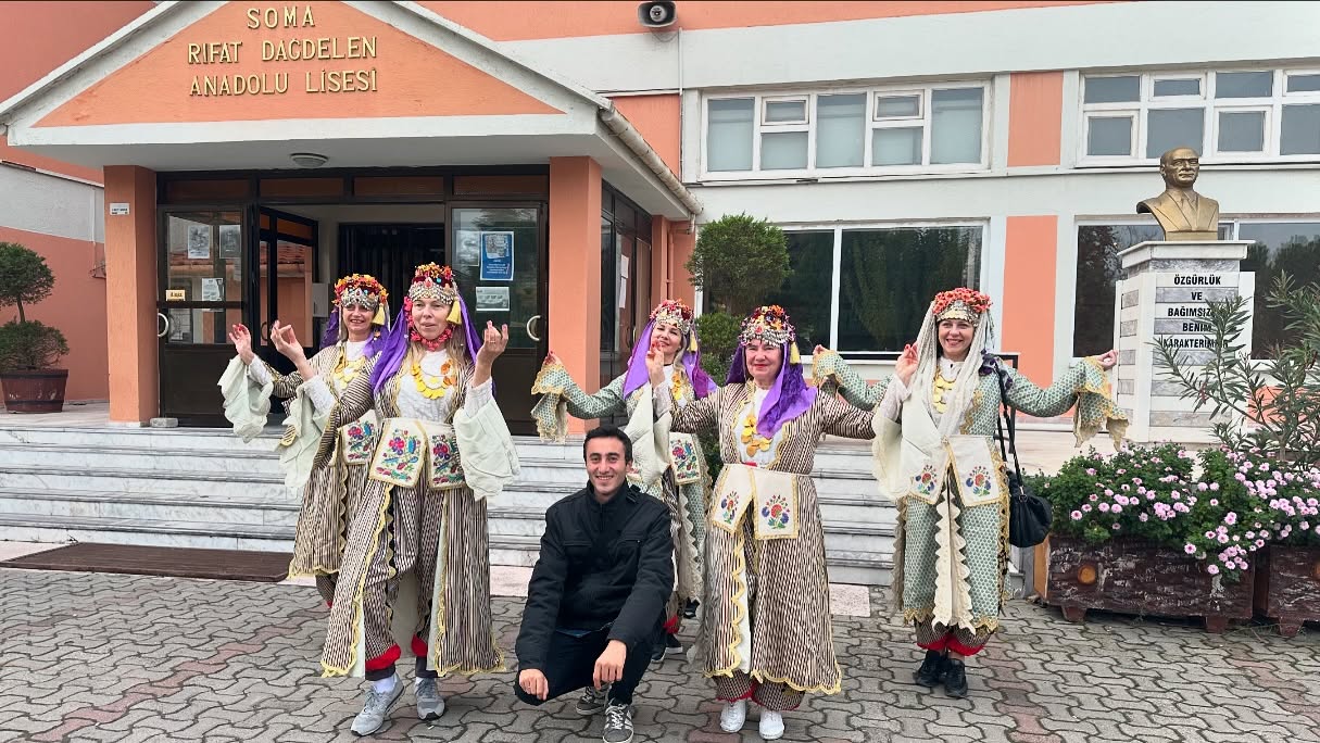 Erasmus+ projeleri kapsamında Türkiye’deki eğitim ve öğretim etkinliklerini gözlemlemek ve profesyonel olarak kendilerini geliştirmek amacıyla Soma Rıfat Dağdelen Anadolu Lisesi’ni tercih eden Litvanyalı öğretmenlere, Belediyemiz Halk Oyunları Eğitmeni Onur Karazeybek tarafından kültürümüz tanıtıldı. Eğitmenimiz, öğretmenlere çeşitli figürler öğreterek birlikte bir halk oyunu etkinliği düzenledi.