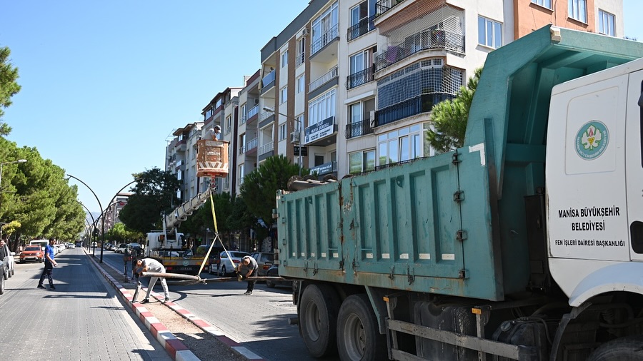 “ Manisa Büyükşehir Belediyesi, Atatürk Caddesi’nin orta refüjündeki arızalı ve yanmayan aydınlatma direklerini yenileyerek önemli bir iyileştirme çalışması gerçekleştirdi.