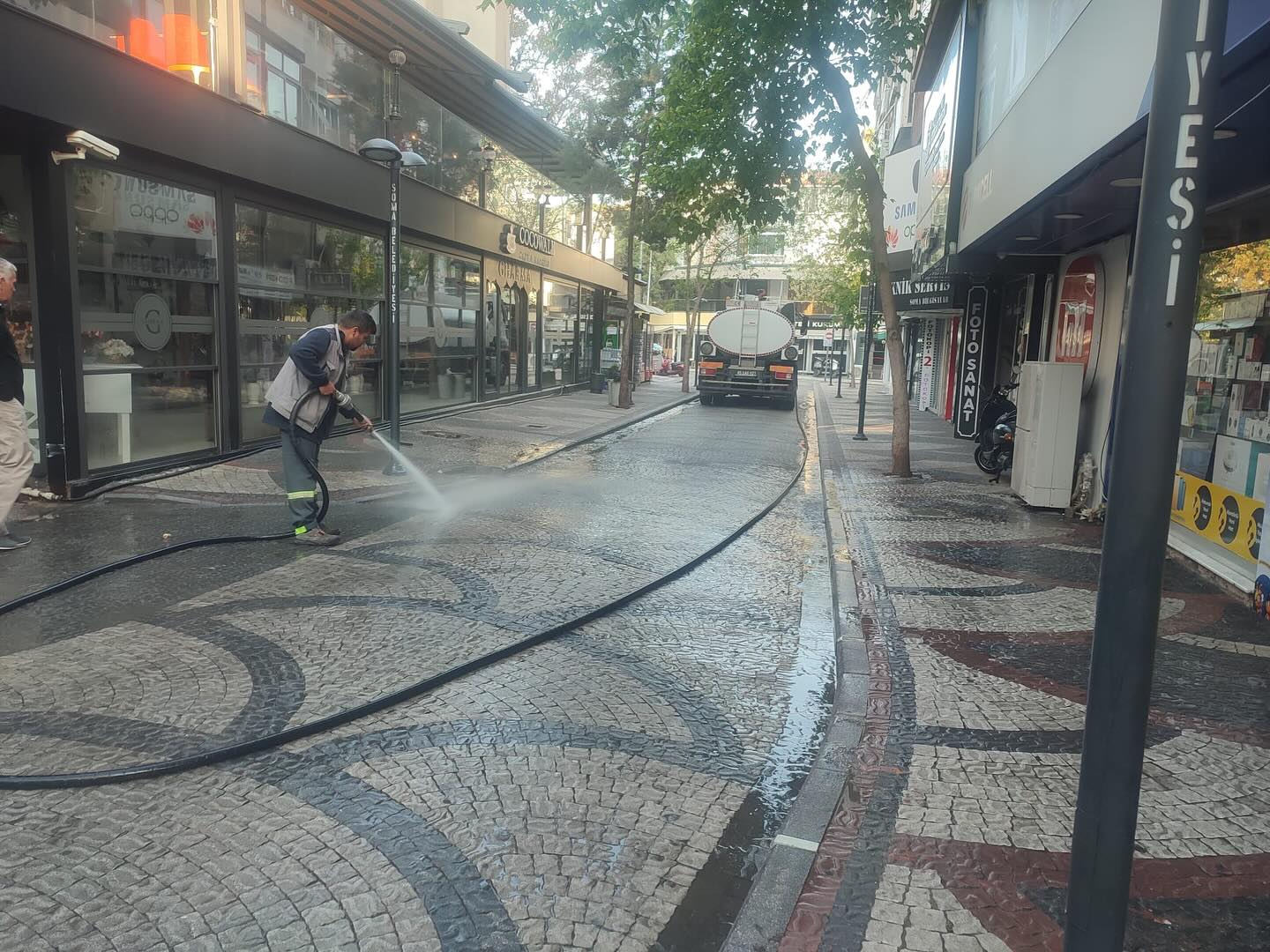 Belediyemizin temizlik işleri ekipleri, bayramın ikinci gününde de kararlılıkla yıkama çalışmalarını sürdürüyor. Kafeler Sokağı,Topçu Sokak, İrfan Sokak ve Park Altı Cami gibi ilçemizin çeşitli noktalarında bulunan caddeler,ekiplerimiz tarafından titizlikle temizleniyor ve yıkanıyor.