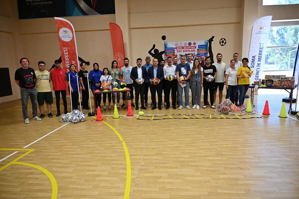 Kaymakam Fatih Akkaya, Belediye Başkan Yardımcımız Sabır Tuna, İlçe Müftüsü Hasan Hüseyin Kılınçal, İlçe Gençlik ve Spor Müdürü Dilek Mert, İlçe Milli Eğitim Müdürü Bekir Çakmak, Belediye Gençlik Hizmetleri Spor Müdür V. Haydar Güllü, Öğrenciler ve Öğretmenler ile birlikte Soma Gençlik Merkezin'de Yaz Okulunun açılışına katıldılar.