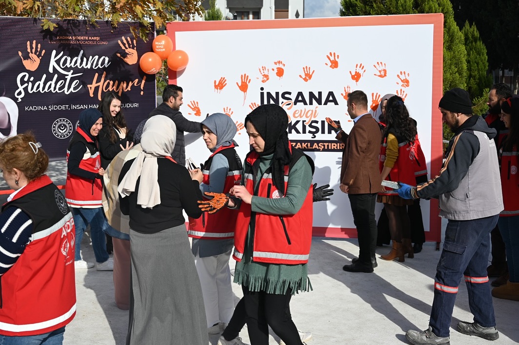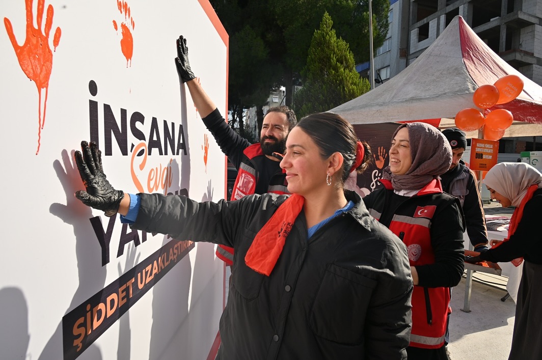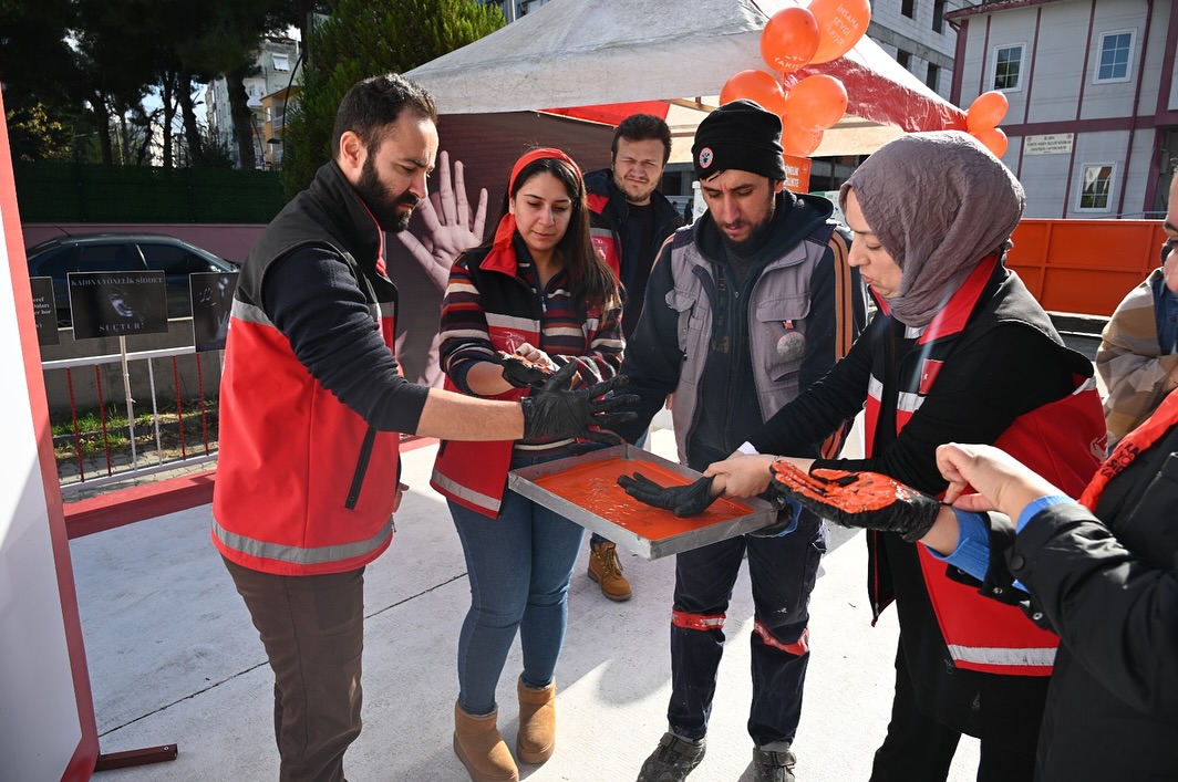 Kadına yönelik şiddetin, yalnızca fiziksel değil, psikolojik, ekonomik ve sosyal boyutlarıyla insan onurunu zedeleyen bir sorun olduğunun vurgulandığı etkinlikte, turuncu renk bir kez daha dayanışma ve umut simgesi olarak öne çıktı. Etkinlik kapsamında, katılımcılar turuncu boyamalar yaparak şiddete karşı birlik mesajı verdi.