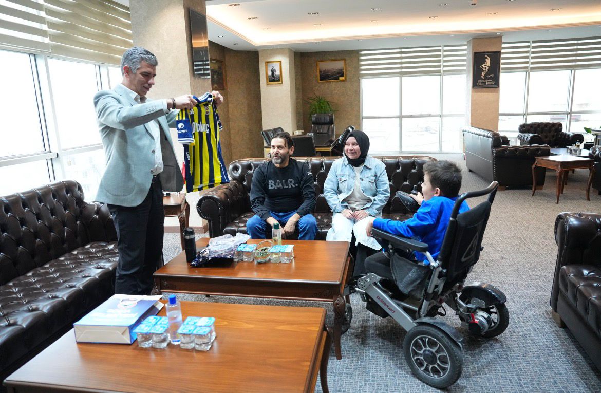 Soma Belediye Başkanı Sercan Okur, DMD (Duchenne Musküler Distrofi) hastalığıyla mücadele eden minik Şenol Berk’i makamında ağırladı. Fenerbahçe taraftarı olan Şenol Berk’e sürpriz yapan Başkan Okur, daha önce söz verdiği gibi sevdiği takımın formasını hediye etti.