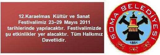 12.Karaelmas Kültür ve Sanat Festivalimiz 23-29 Mayıs 2011 tarihlerinde yapılacaktır. Festivalimizde şu etkinlikler yer alacaktır. Tüm Halkımız Davetlidir. 80
