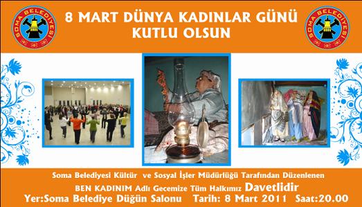 Soma Belediyesi Kültür ve Sosyal İşler Müdürlüğünce 08 Mart Dünya Kadınlar Günü ile ilgili hazırlanan program çalışmaları hızla devam ediyor. Konu ile ilgili olarak Soma Belediyesi Halk Oyunları Eğitmeni... 145