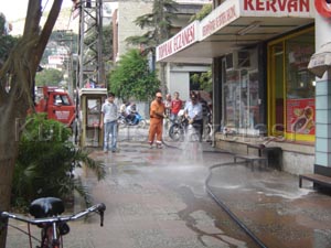 Soma Belediyesi Temizlik işleri ekipleri dün Atatürk Caddesini baştan aşağı yıkayarak temizledi. Özellikle seyyar çöp kutularını da yıkayan ekipler evsel atıkların bu kutulara atılmasından şikayetçi. Halen Atatürk caddesinde poşetle çöp toplama yapılıyor. Ancak bazı vatandaşların mutfak atıklarını bu kutulara attıkları ve çevreye pis koku yaydıkları bel 238